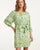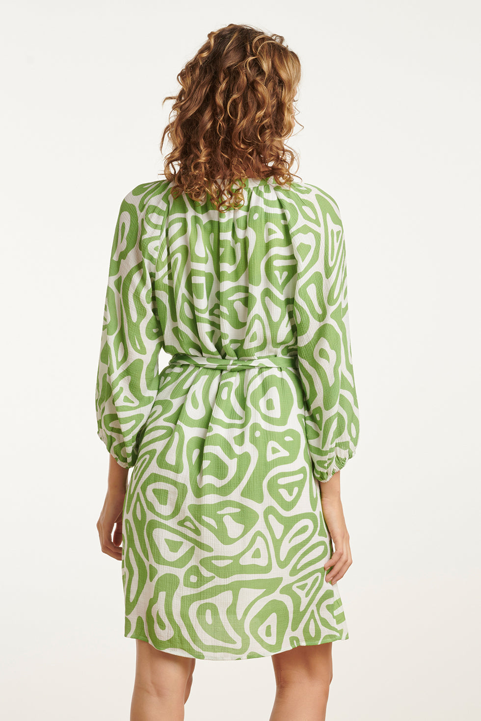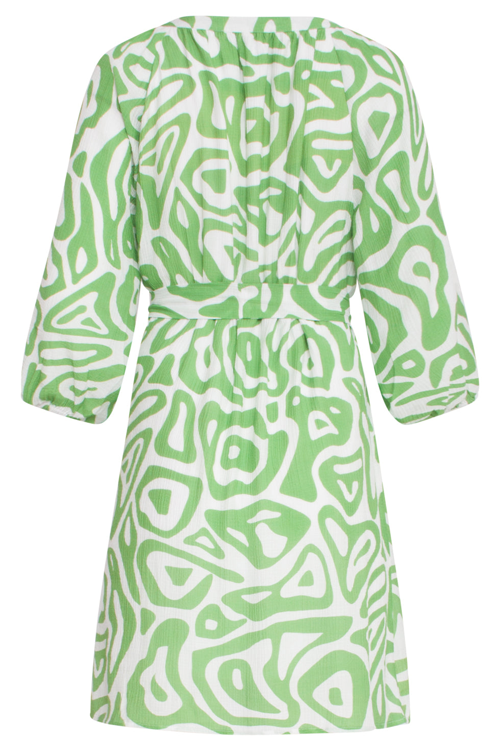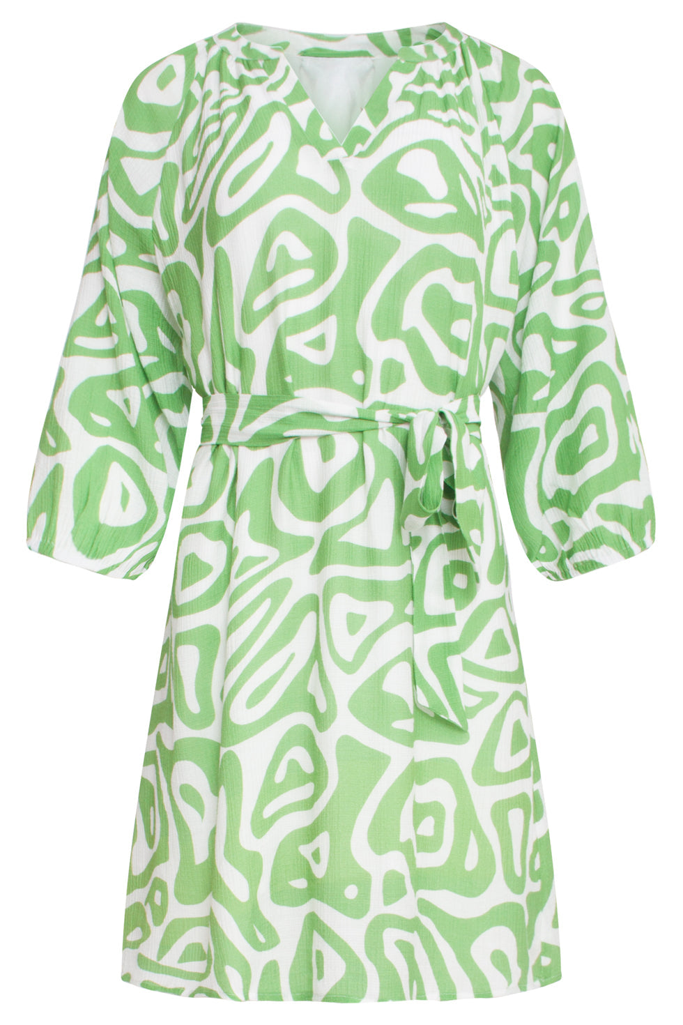 25005 Crinkle Jurk Met Lichtgroene En Witte Abstracte Print