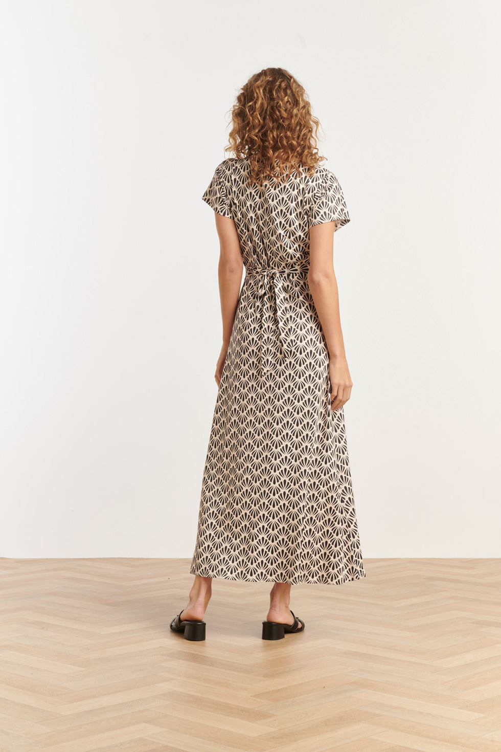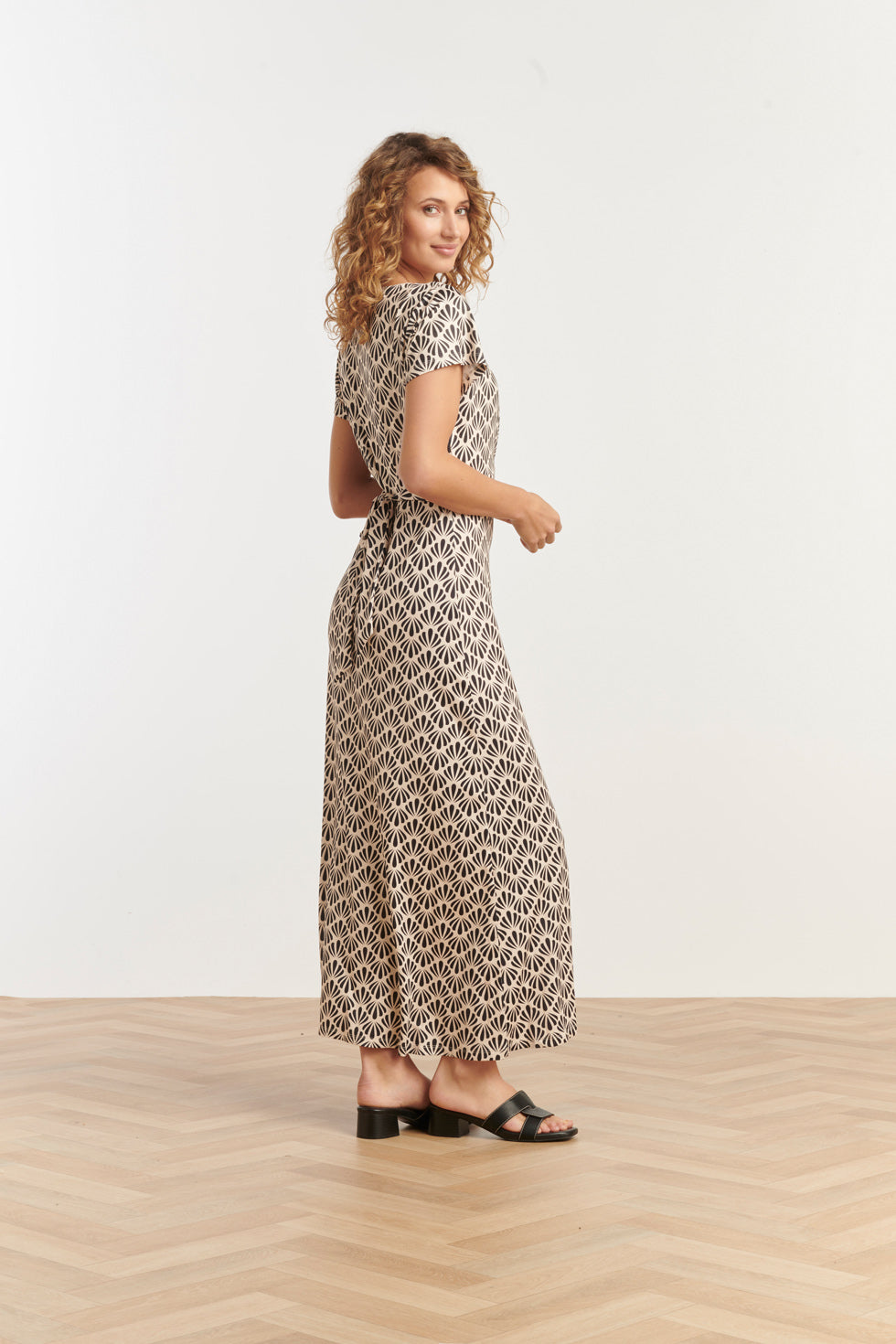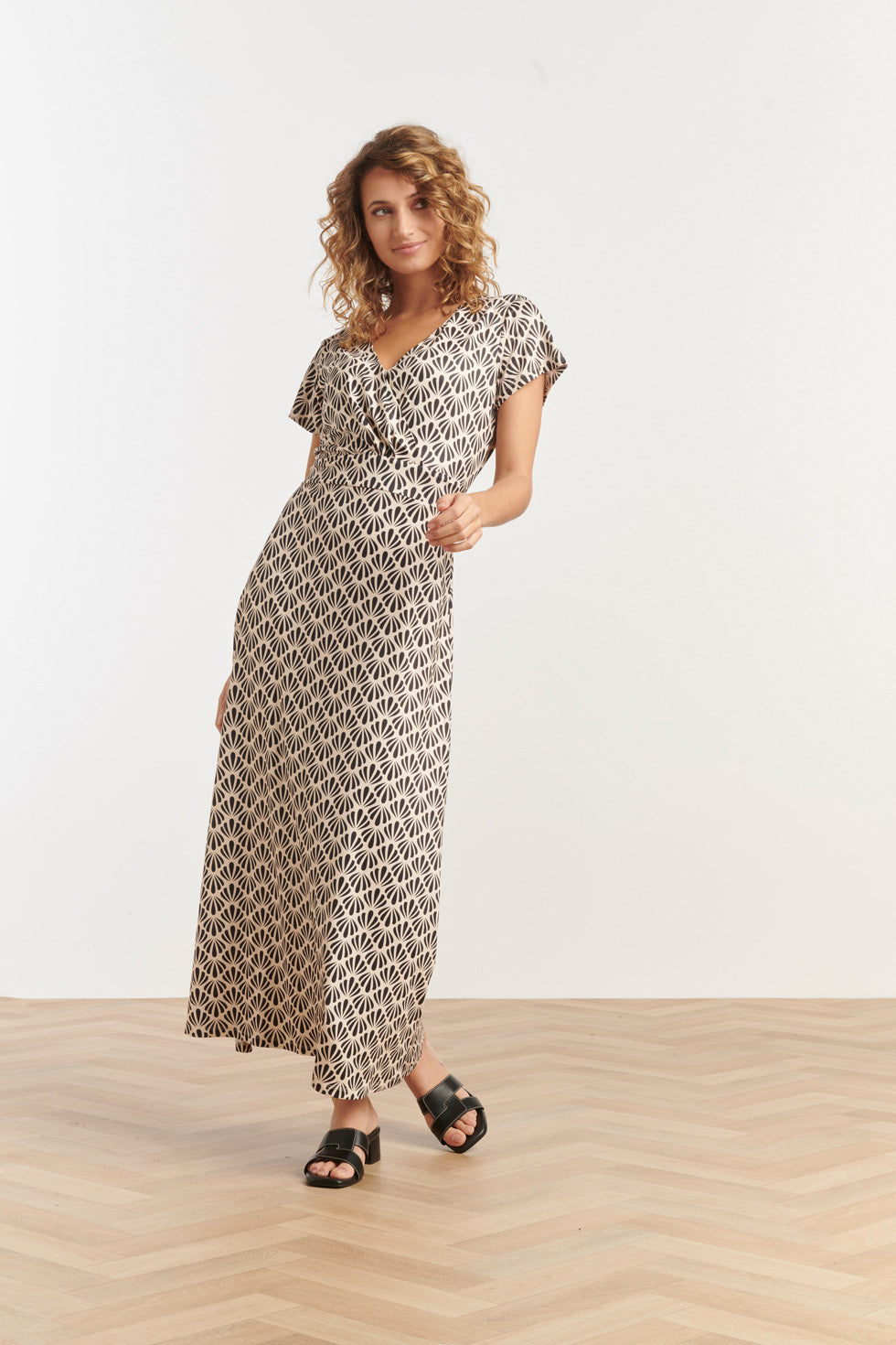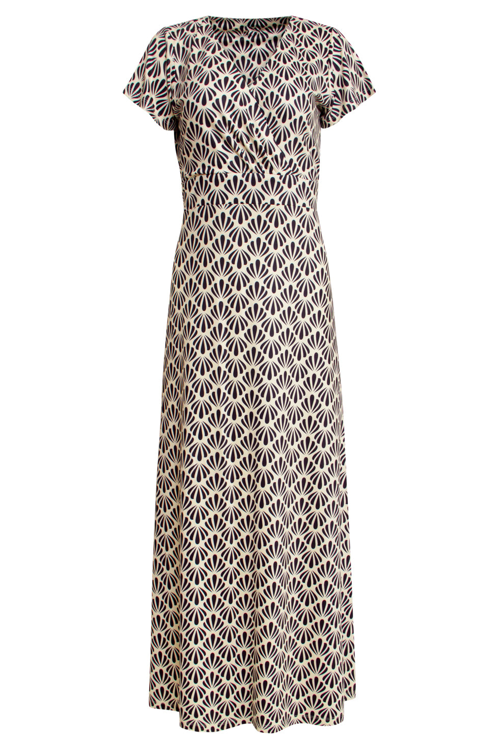 25063 Off-White En Zwarte Schelpenprint Maxi-Jurk
