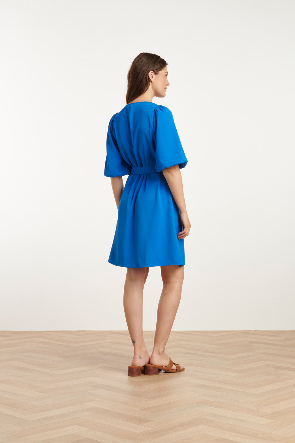 25152 Balloon Sleeve Kort Jurk In Kobaltblauw