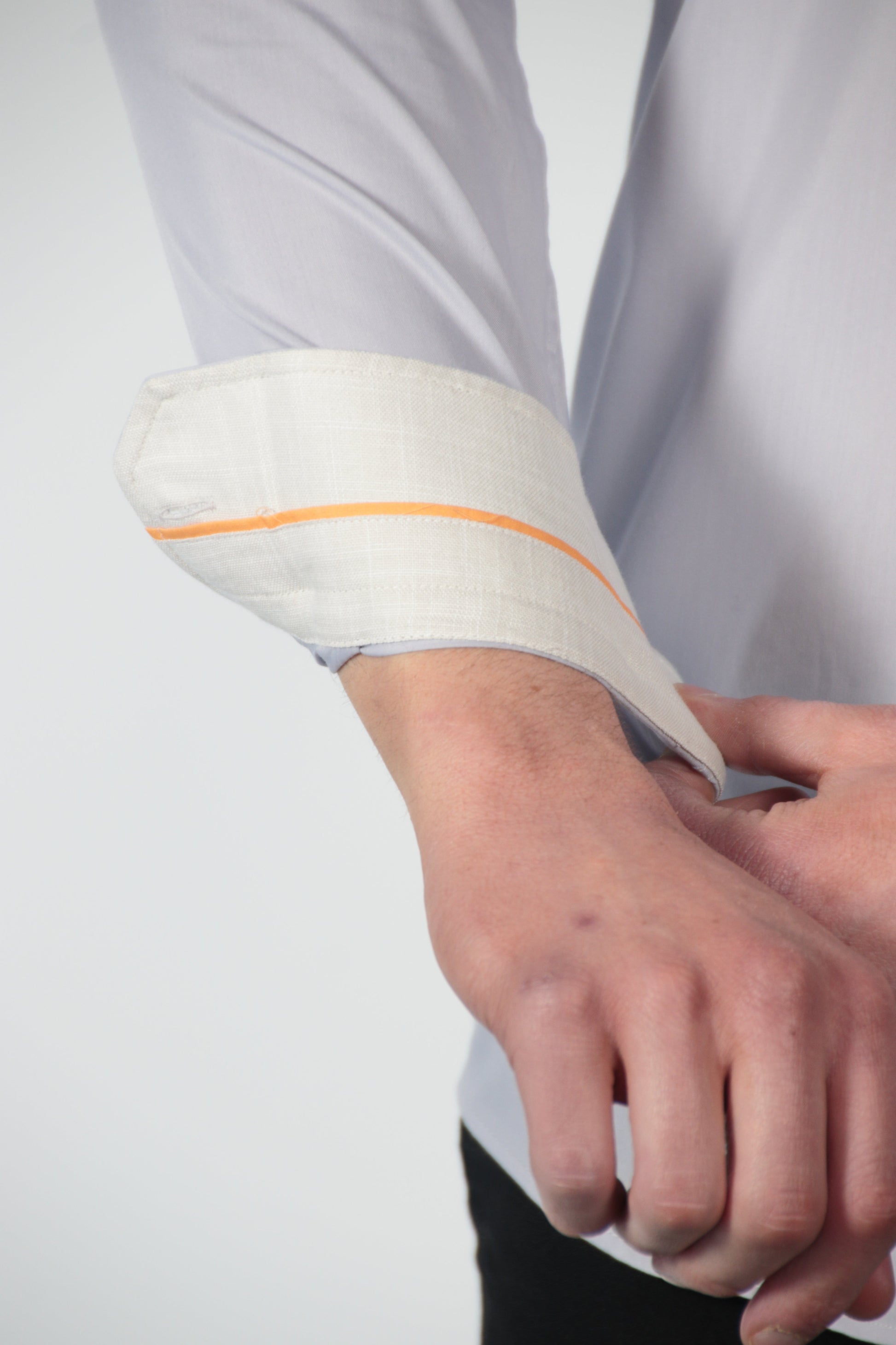 - Gedetailleerde afwerking: Kleuren komen terug in de binnenkant van de kraag en manchetten.