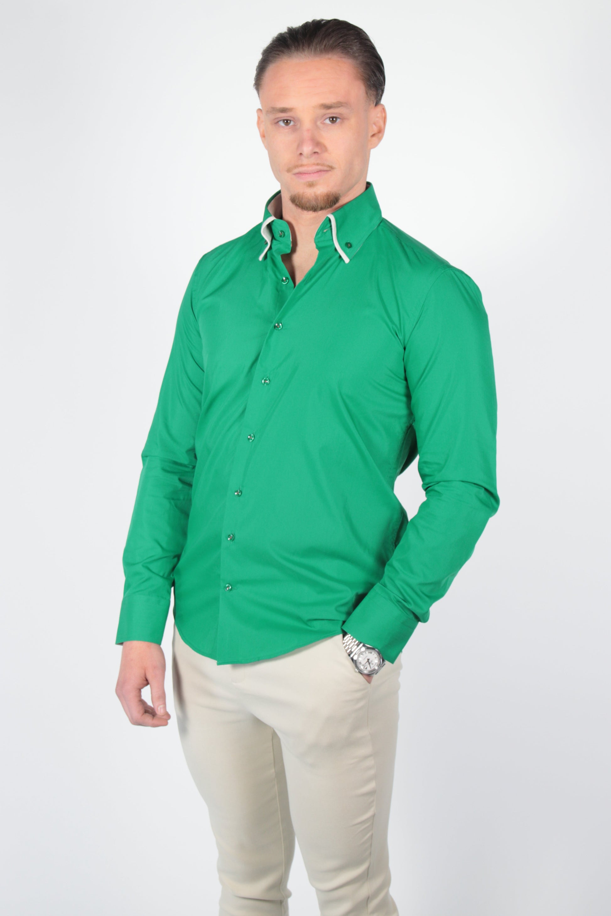 Het Parla overhemd is de perfecte balans tussen elegantie en moderne stijl. Dit overhemd valt slim fit en is voorzien van een unieke dubbele kraag met een subtiele kleurcombinatie die prachtig terugkomt in de binnenkant van de kraag en de manchetten. De zorgvuldig gekozen knoopjes versterken de stijlvolle uitstraling van dit kledingstuk.