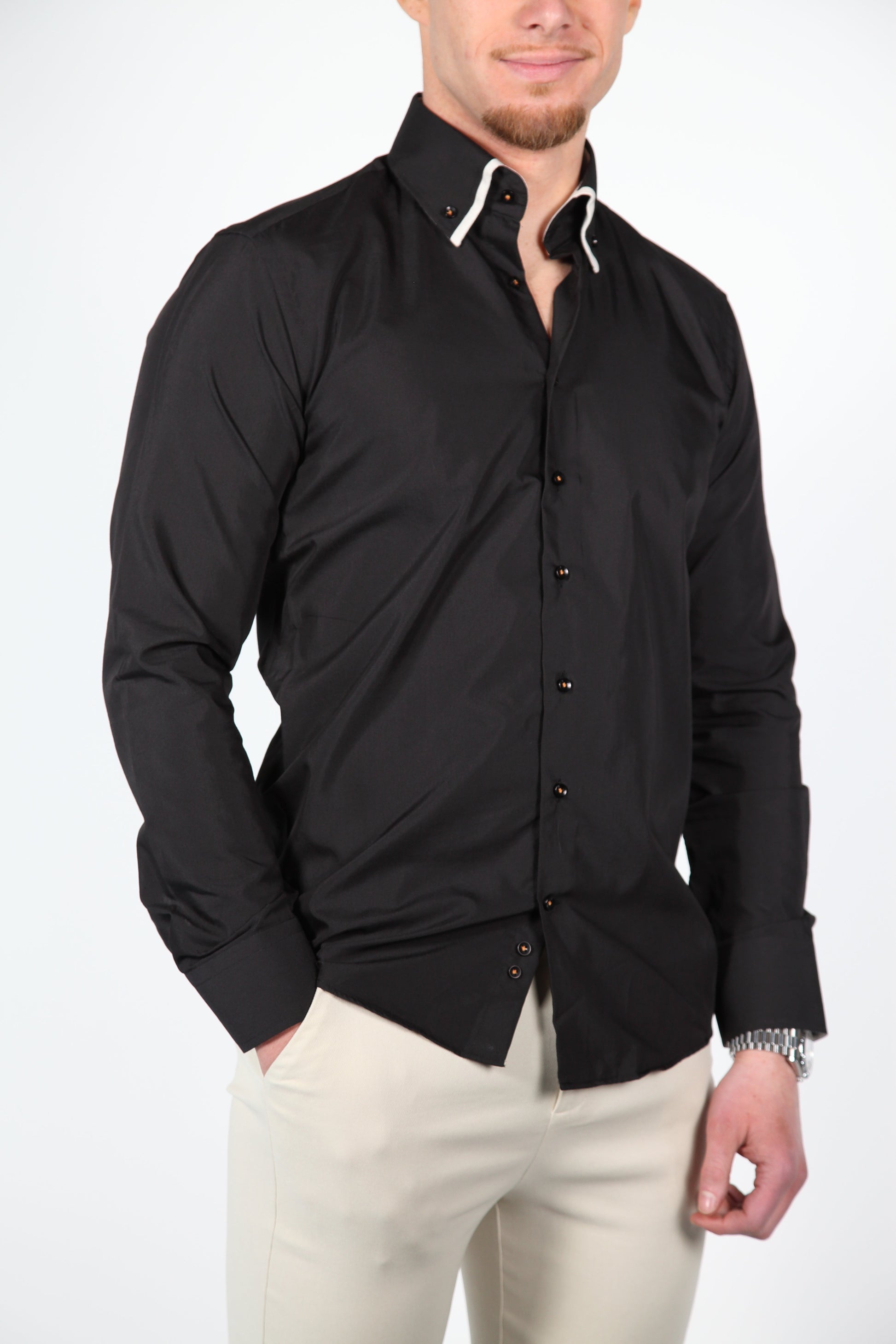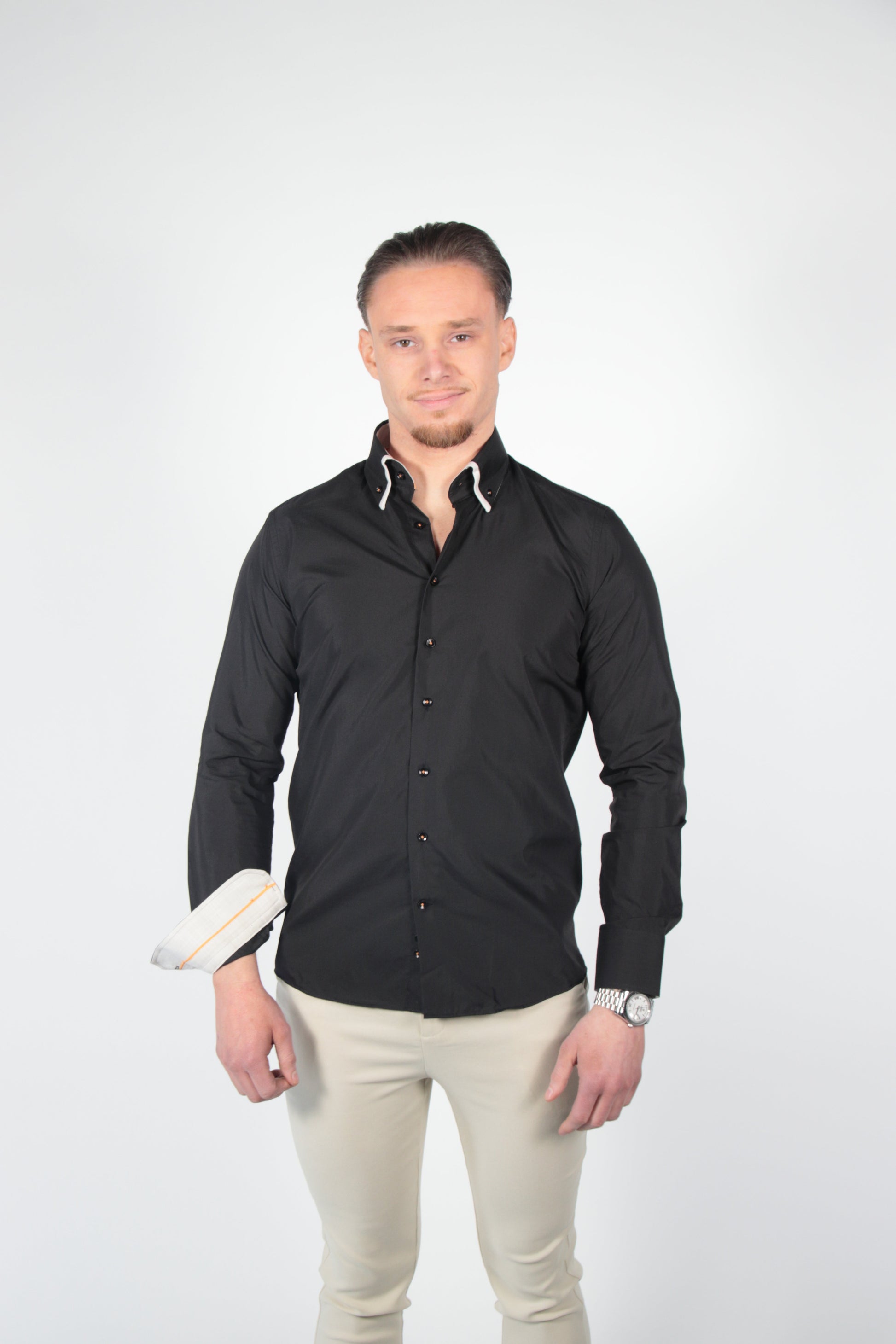 - Stijlvolle knoopjes: Afgestemd op de kleurcombinatie van het overhemd.