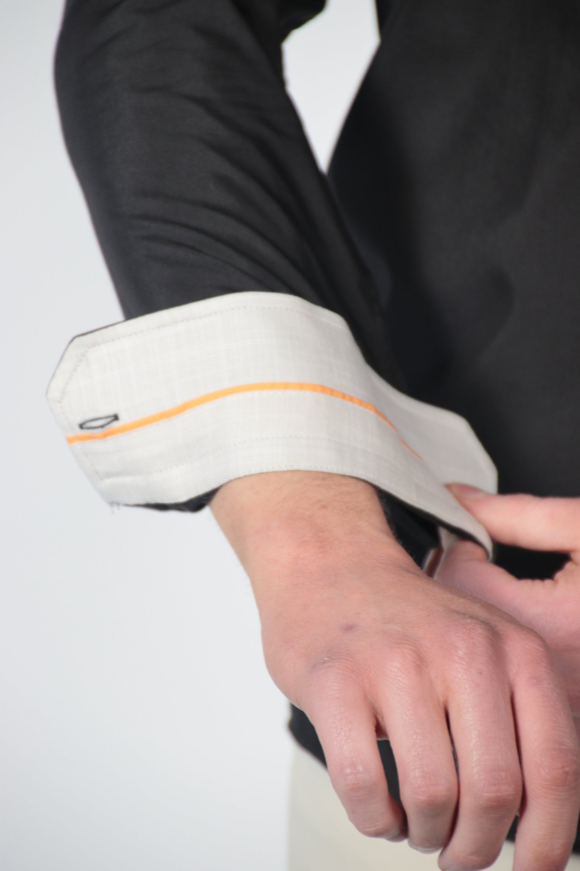 - Gedetailleerde afwerking: Kleuren komen terug in de binnenkant van de kraag en manchetten.