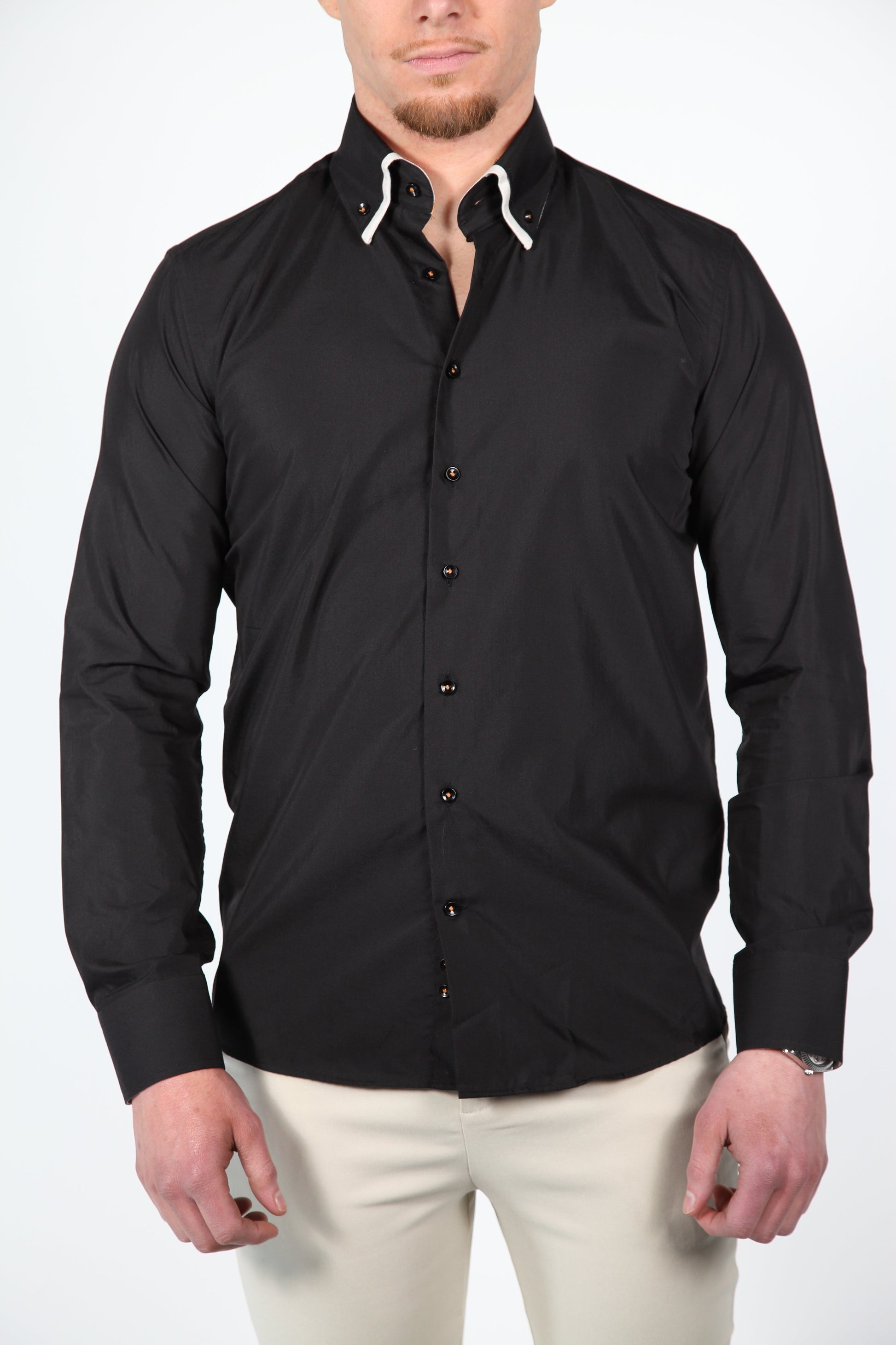 Het Parla overhemd is de perfecte balans tussen elegantie en moderne stijl. Dit overhemd valt slim fit en is voorzien van een unieke dubbele kraag met een subtiele kleurcombinatie die prachtig terugkomt in de binnenkant van de kraag en de manchetten. De zorgvuldig gekozen knoopjes versterken de stijlvolle uitstraling van dit kledingstuk.